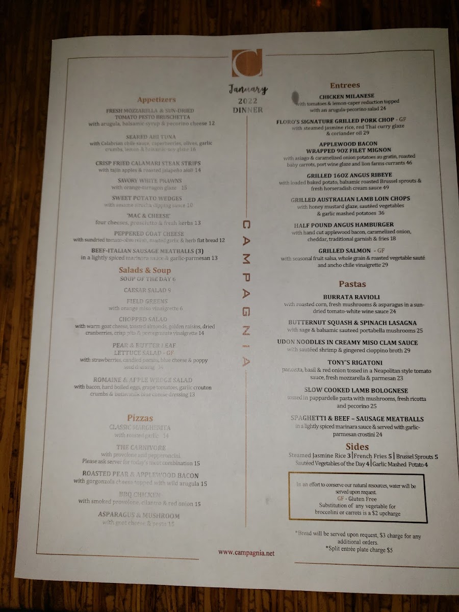 Salads and soups also take center stage, featuring delightful options such as the refreshing Watermelon and Roasted Beets salad. With each dish, Campagnia Bistro delivers an unforgettable dining experience, complete with top-notch service and a warm ambiance.